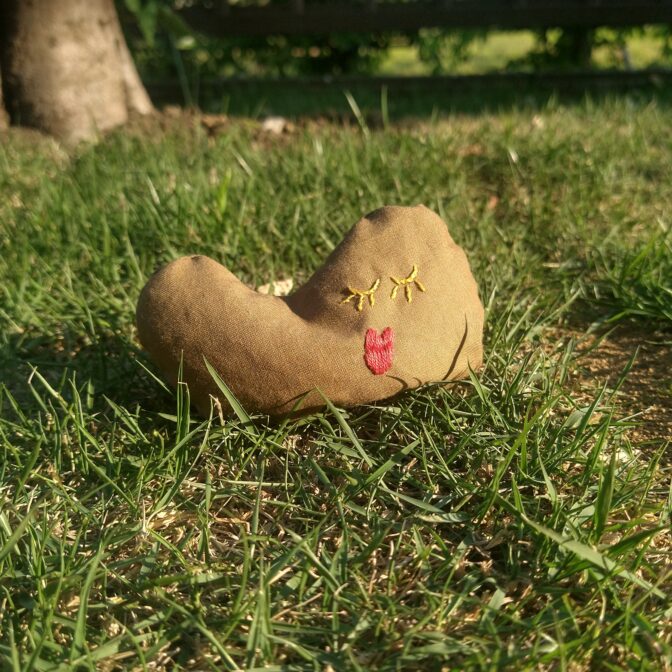 手のひらサイズでにぎりやすいポテトのお手玉「ポテ玉」は、